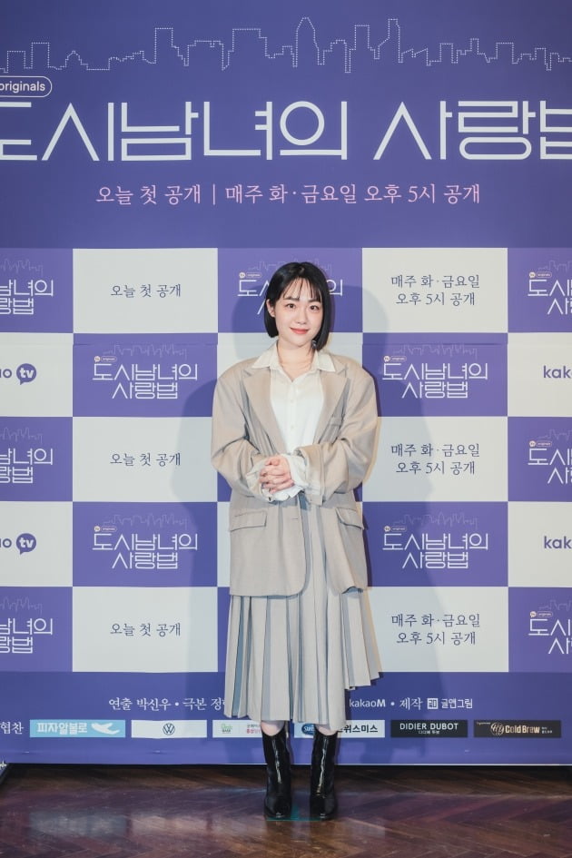 '도시남녀의 사랑법' 배우 소주연./사진제공=카카오M ‘러블리함 그 자체’라는 수식어가 아깝지 않은 소주연. 그는 베이지색 오버핏 재킷과 플리츠 랩 스커트로 레트로 느낌을 물씬 풍겼다. 넉넉한 품으로 여리 여리한 몸매를 더욱 강조했고, 흰 셔츠의 깃은 밖으로 빼고 소매 부분을 자연스럽게 접어 답답한 느낌을 지웠다. 여기에 뻔한 느낌의 신발이 아닌 검은색 웨스턴 앵클부츠를 선택해 반전 매력을 뽐냈다.