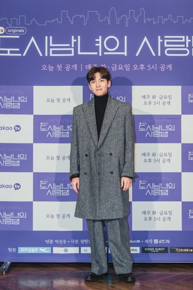 '도시남녀의 사랑법' 배우 지창욱./사진제공=카카오M 지창욱은 훤칠한 기럭지에 걸 맞는 롱코트 패션으로 눈부신 비주얼을 뽐냈다. 딱 떨어지는 핏의 슈트 대신 넉넉한 품의 오버 숄더 브레스트 코트와 와이트 팬츠를 선택했고, 안에는 검은색 터틀넥 니트를 입어 무겁지 않은 캐주얼한 분위기를 연출했다. 단추는 잠그지 않고 소매 부분은 가볍게 걷었다.