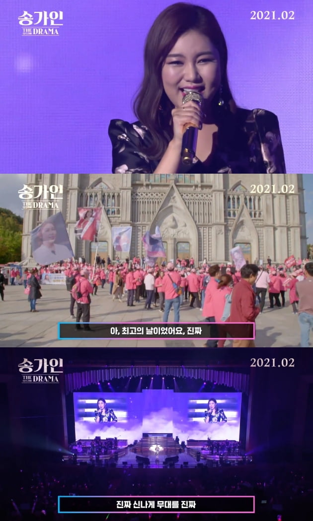 지난 2일 첫 예고편이 공개되면서 팬들의 기대감은 더욱 높아졌다. 공개된 예고편에는 2019년, 트로트로 대한민국을 들썩이게 만든 송가인의 생생한 콘서트 현장과 팬들의 뜨거운 함성, 그리고 콘서트 장을 여운으로 가득 채운 송가인의 무대가 담겨져 있다.