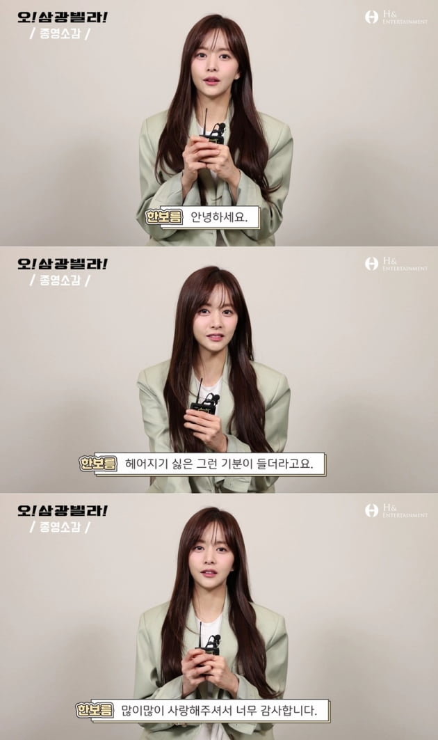 종영을 단 1회만 앞두고 한보름의 소속사 H&엔터테인먼트는 공식 유튜브 채널을 통해 '오! 삼광빌라!' 한보름의 종영 소감을 공개했다.