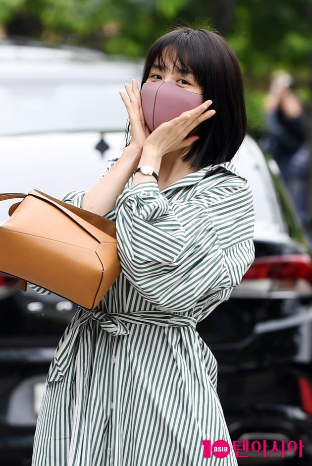 배우 박하선이 6일 오전 서울 목동SBS에서 진행된 '박하선의 씨네타운' 출근길에 포즈를 취하고 있다.