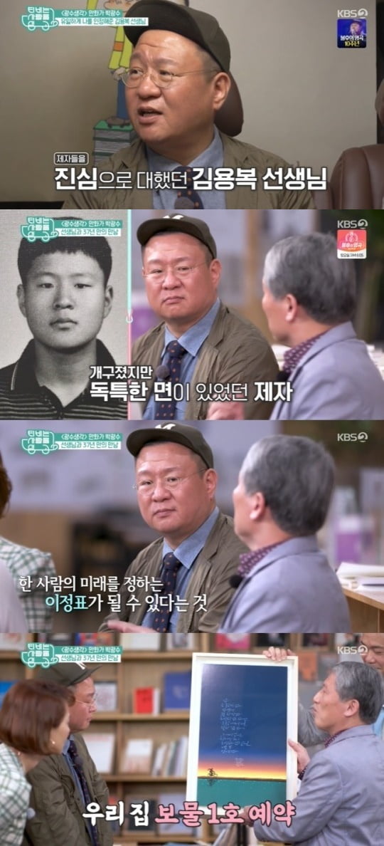 선생님은 "보잘 것 없는 나한테 수업을 듣고 큰 작가가 됐다. 교사가 학생들한테는 큰 영향이 돼서 일평생 길을 가는 이정표가 될 수도 있는 것"이라며 "훌륭한 만화가로 성장해서 자랑스럽다"고 했다. 박광수는 선생님에게 직접 그린 글귀와 그림을 전했고, 이용복 선생님은 집에 보물 1호가 될거라고 말하며 훈훈함을 더했다.