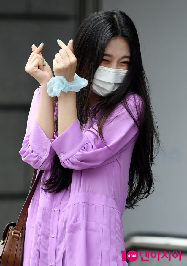 그룹 레드벨벳 조이가 1일 오후 서울 영등포구 여의도 KBS에서 열린 '유희열의 스케치북' 녹화에 참석하기 위해 출근하고 있다.