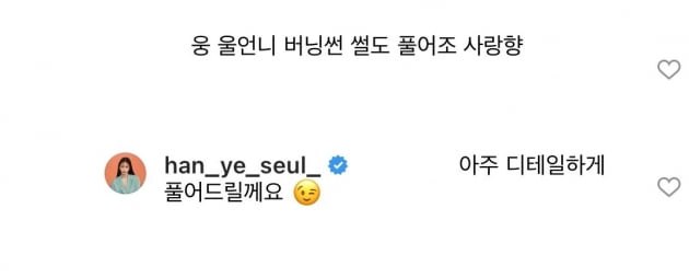 한예슬은 지난 4일부터 인스타그램 댓글을 통해 팬들과 소통했다. 선택적으로 답글을 달았는데, 대부분 자신의 루머와 관련된 내용이거나 류성재를 언급한 댓글이었다.
