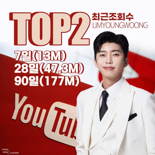 19일 기준 임영웅의 공식 유튜브 채널 '임영웅'은 90일간 누적 조회수 177만으로 2위를 차지했다. 해당 채널은 이날 구독자 119만 명을 기록해 더욱 눈길이 모이고 있다. 가면 갈수록 더욱 치솟는 인기에 임영웅의 팬클럽 '영웅시대'는 매일 행복한 나날을 보내고 있다.