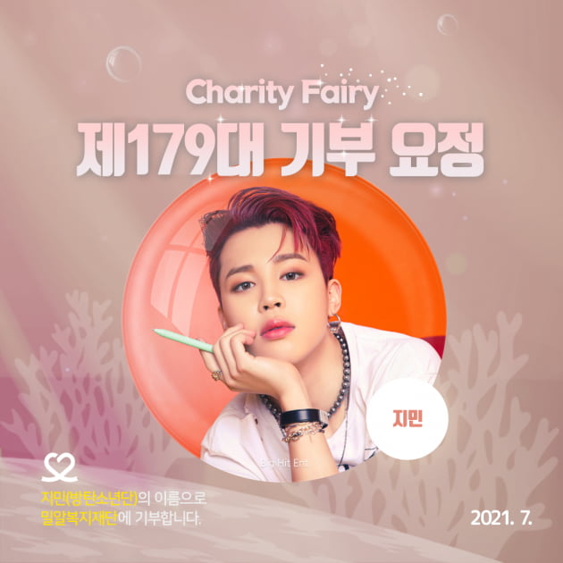 지금까지 기부천사 3회, 기부요정 7회 선정된 지민은 누적 기부금액 500만 원을 달성했다. 지민의 이름으로 '밀알복지재단'에 전달될 기부금은 코로나19로 고립된 장애인을 위한 기금으로 쓰인다. '최애돌' 총 누적 기부금액은 2억 4,250만 원에 달한다.