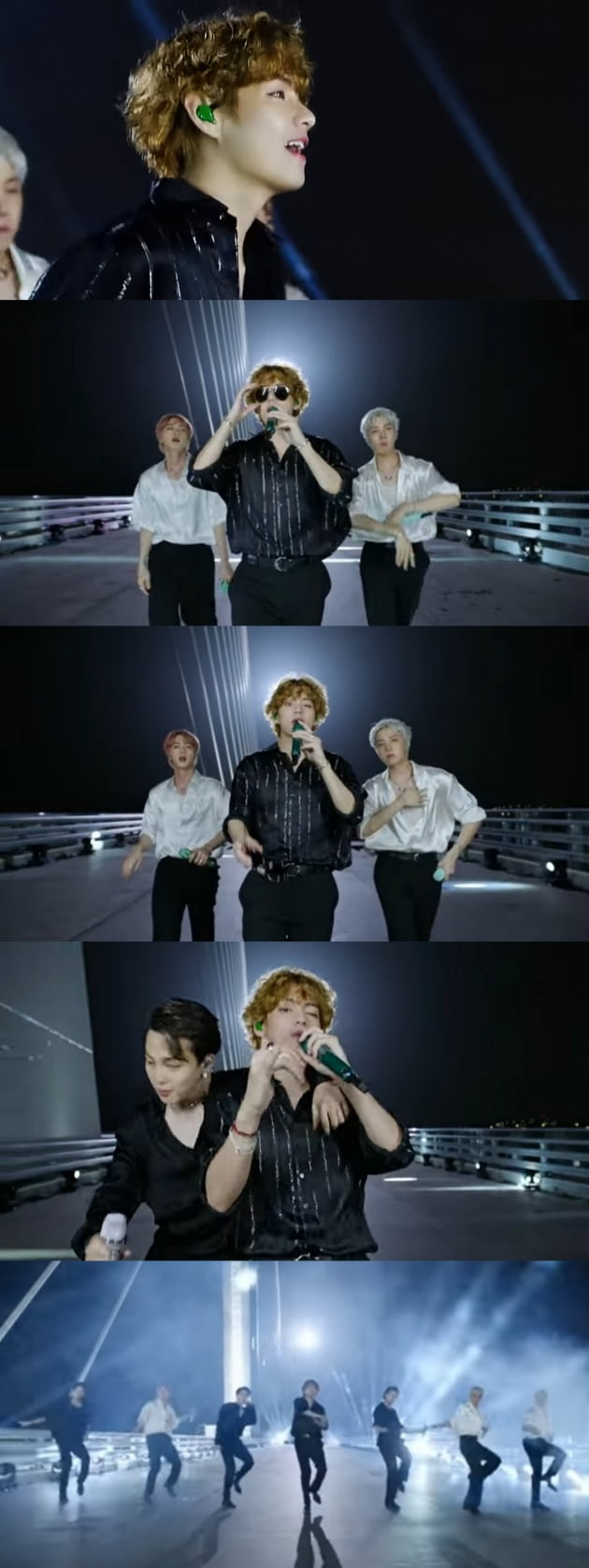 대교 위를 걸으면서 퍼포먼스를 하는 장면에서 뷔의 환한 미소와 바람에 흩날리는 머리카락, 어두운 밤에 빛나는 조명, 한강, 모든 것이 어우러졌다. 마치 뷔가 주연한 청춘 영화의 한 장면을 연상케 했다.