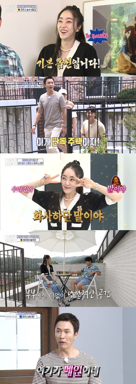 덕팀은 마지막으로 파주시 산남동의 ‘T나는 주방 집’을 소개했다. 현관문을 열면 편백나무 칸살과 삼나무 서까래 인테리어가 눈에 띄었다. 깔끔한 주방에는 초대형 ‘T’자 조리대가 있었으며, 프라이빗 잔디 마당에는 관리가 쉬운 화강암 데크가 깔려 있었다. 또, 2층 프라이빗 발코니에서는 내 집 마당을 내려다보며 힐링할 수 있었다.