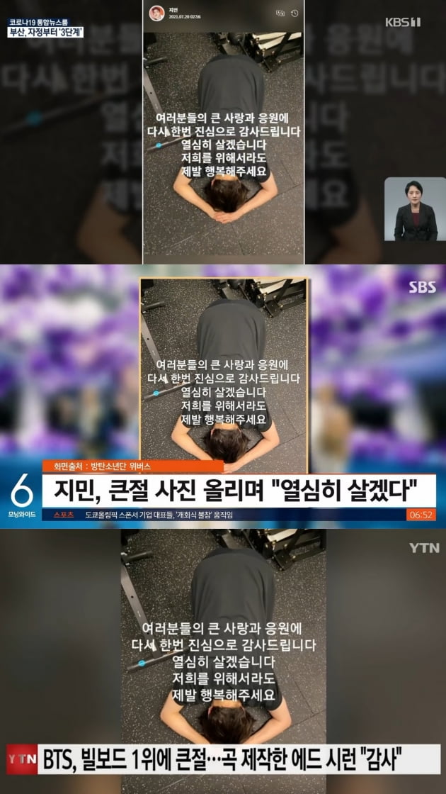 이후 KBS, SBS, YTN, 연합 뉴스 등의 국내 언론은 빌보드 '핫 100' 1위 소식을 전하며 지민의 감사 메시지와 큰절 사진을 대대적으로 보도했다.