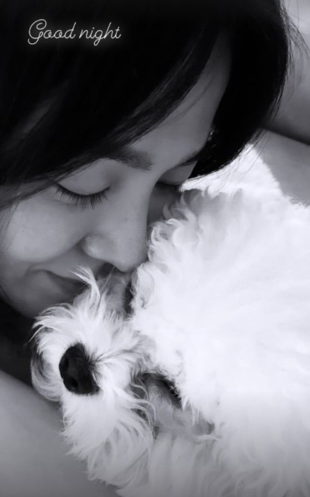 송혜교는 25일 자신의 인스타그램 스토리에 "Good Night"이라는 글과 함께 흑백사진을 올렸다. 사진 속 송혜교는 자신의 반려견 루비를 품에 꼭 안고 있다. 송혜교와 반려견 모두 편안하고 행복한 모습이다. 흑백사진으로 인해 송혜교의 또렷한 이목구비는 더욱 돋보인다.