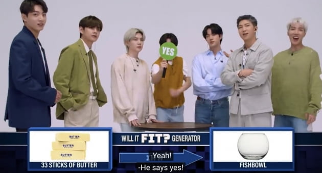 지난 24일(한국시간) 방탄소년단은 미국 인기 토크쇼 '더 투나잇 쇼 스타링 지미 팰런'(The Tonight Show Starring Jimmy Fallon, 이하 '지미 팰런쇼')에 출연해 새로운 게임 'Will It Fit?'(거기에 들어갈 수 있을까?)로 팬들에게 즐거움을 선사했다.