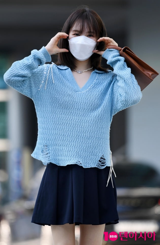 그룹 레드벨벳 멤버 웬디가 5일 오후 서울 목동 SBS에서 진행된 '웬디의 영스트리트'에 출근하며 포즈를 취하고 있다.