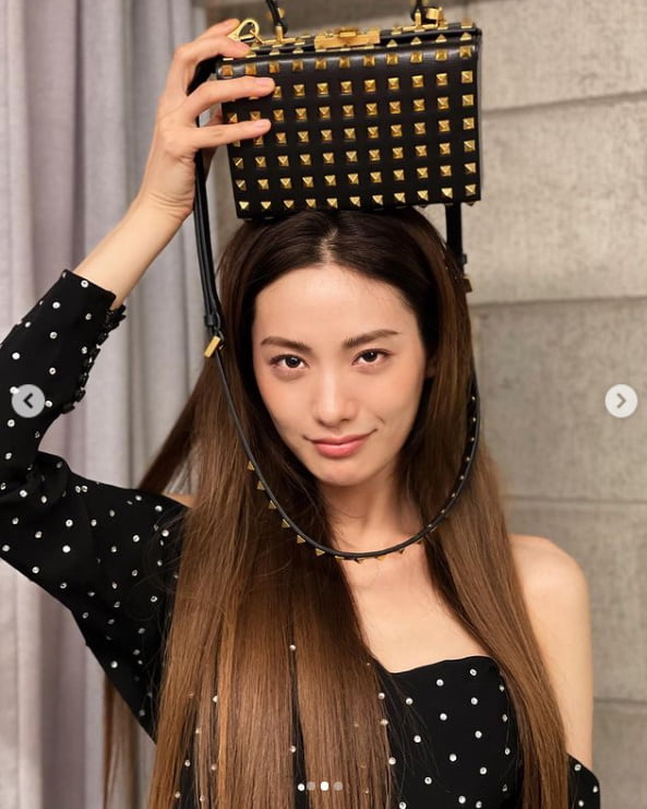 공개된 사진 속 나나는 도트 비즈 장식의 오프숄더 블라우스를 착용하고 각진 어깨를 과감하게 드러낸 모습이다.