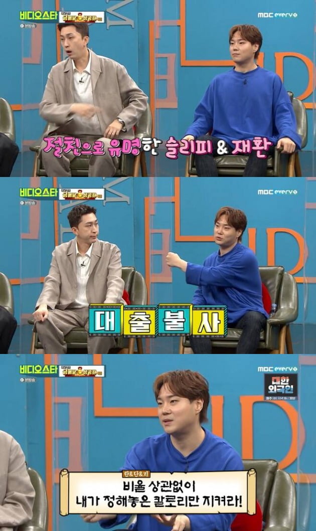유재환은 "살 뺄 때 이겨내야 한다는 강박관념이 있다. 그러면 4개월 정도는 성공할 수 있다. 그러나 조금만 살이 찌면 지는 게 된다. 정신적으로 패하는 느낌이 들면 요요가 크게 온다"며 "정확히 내 식욕을 뭔지 판단해야 된다. 단 것과 탄수화물을 원하는지, 양껏 먹길 바라는지. 도저히 흰 탄수화물을 못 끊겠다면 운동으로 근윤량을 늘리면 된다. 운동하기 싫으면 기초대사량 만큼만 먹으면 된다"고 밝혔다.