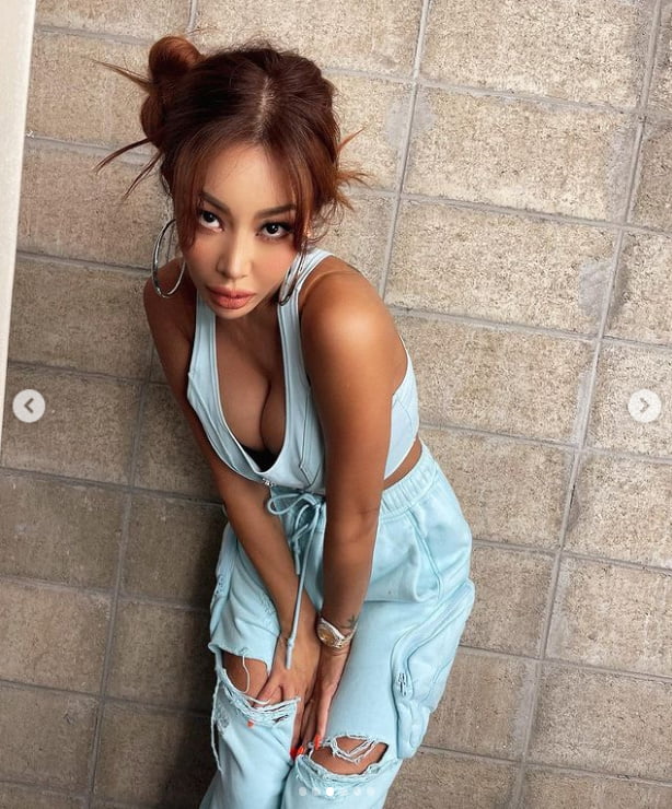 공개된 사진에는 푸른색 톱과 바지를 입고 포즈를 취한 제시의 모습이 담겼다.