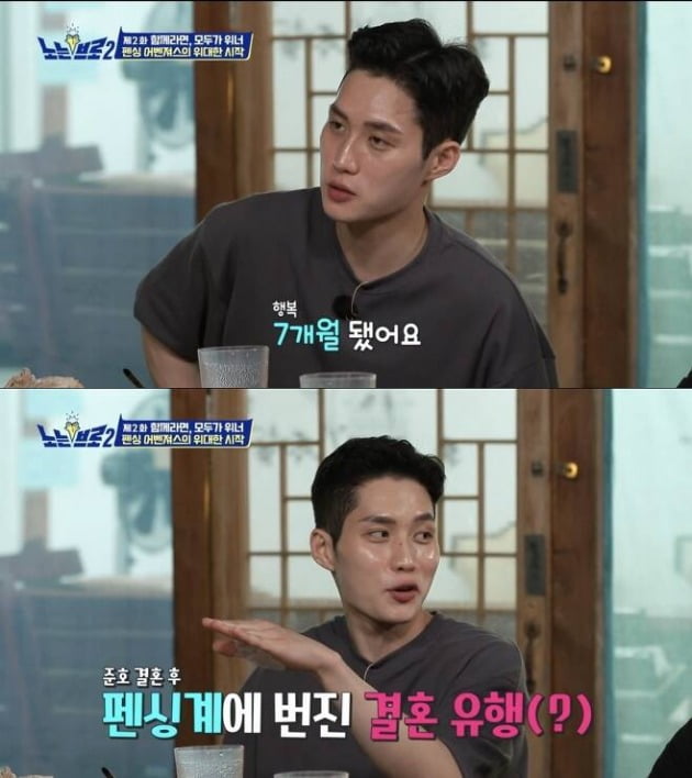 김준호는 승무원 출신 아내가 임신 중이라고 밝히며 "임신 7개월이다. 11월 3일, 4일이 (출산) 예정일"이라고 밝혔다. 이에 조준호는 "준호는 뭐든 다 빠르구나. 결혼도 제일 빠르고 아기도 제일 빠르고"라며 감탄했다. 이에 김준호는 "저 결혼하고 잠시 결혼이 유행이 탔다"고 밝혔다. 구본길도 “준호가 결혼을 딱 하는 순간 펜싱계에 결혼 유행이 타버렸다”고 인정했다.