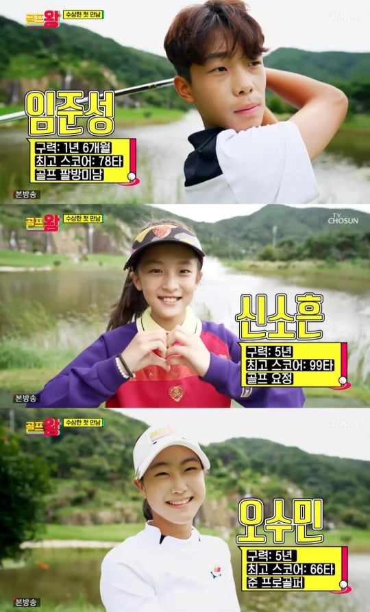 지난 13일 방송된 TV조선 '골프왕'에는 골프 신동들이 출연했다. 이날 방송에는 송종국, 박연수의 딸 송지아와 임창정의 아들 임준성, 사강 딸 신소흔, 청소년 골퍼 1인자 오수민 등이 출격했다.