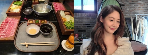 공개된 사진 속 성유리가 저녁 식사로 즐긴 샤브샤브가 보인다.