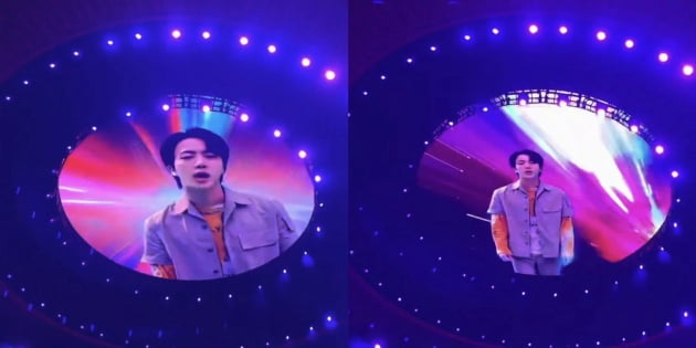 그리고 진의 파트가 스크린에 띄워지며 화면에 진이 등장하자, 콜드플레이의 프론트맨인 크리스 마틴이 진을 향해 유일하게 '월드와이드핸섬!'이라고 외쳤다.