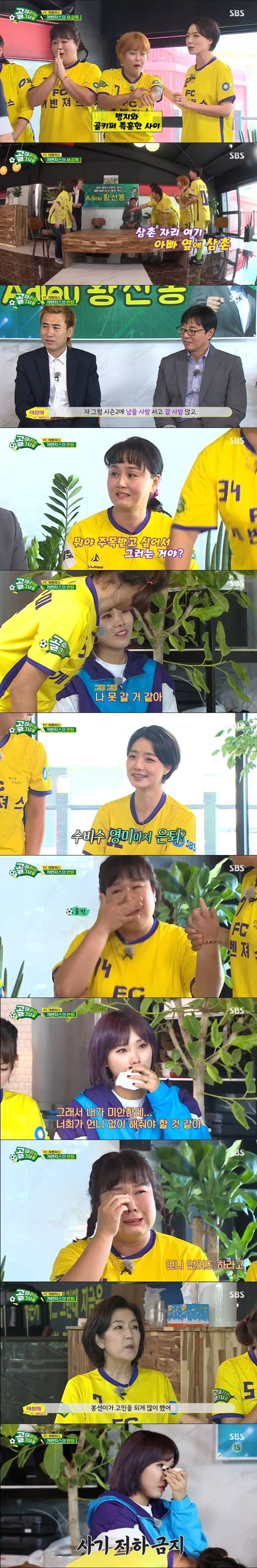 13일 방송된 SBS예능프로그램 ‘골 때리는 그녀들’에서 개벤져스 신봉선과 안영미, 이경실이 하차하는 장면이 그려졌다.