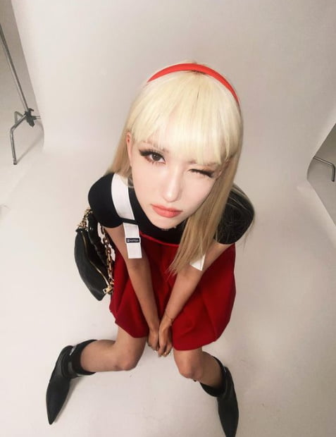 사진 속 전소미는 말그대로 바비인형 자태로 시선을 사로잡았다. 노란 머리에 빨간색 머리띠가 눈길을 끈다.