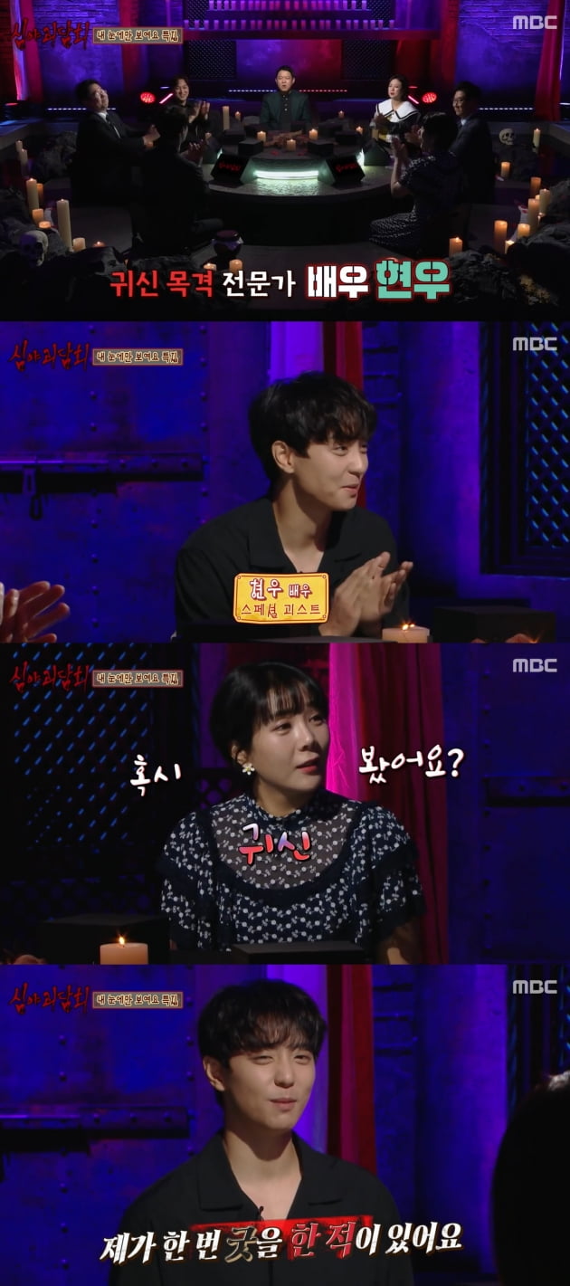 이날 방송에서 MC 김숙은 현우를 '귀신 목격 전문가'라고 소개했다. 현우는 내가 한 번 굿을 한 적 있다. 기억은 잘 나지 않는데 30대 초반이다. 뭐가 자꾸 들리고 말 걸고 그러더라. 남들이 보기에는 연기 연습하는 거로 보일 수도 있었을 것"이라며 "자꾸 귀신이 보여서 굿을 하게 됐다. 근데 그 뒤로 안 보이기 시작했다"고 알렸다.