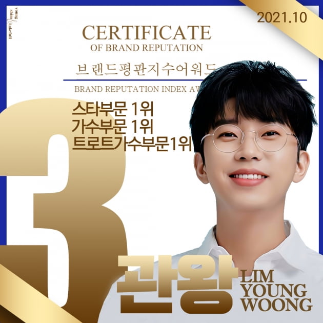 이로써 브랜드 평판 10월 스타, 가수, 트로트 가수 총 3관왕을 차지하는 대기록을 이뤘습니다!!”는 감사 인사와 함께 임영웅의 사진을 게재했다.