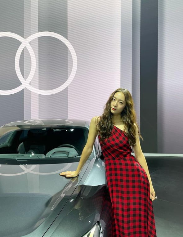 사진 속 정수정은 고급 수입차의 로고가 새겨진 마스크를 쓰고 카메라를 응시하고 있다. 마스크로 가린 얼굴에서 냉미녀의 시크함이 뿜어져 나온다.