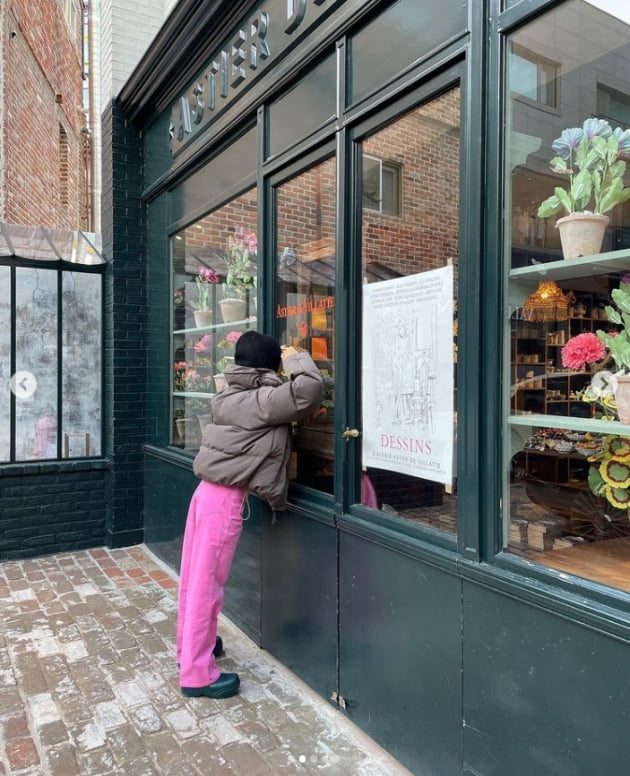 공개된 사진 속 크리스마스 분위기로 꾸민 접시 매장 앞에서 유리창에 얼굴을 박고 구경하는 함연지의 모습이 담겼다.