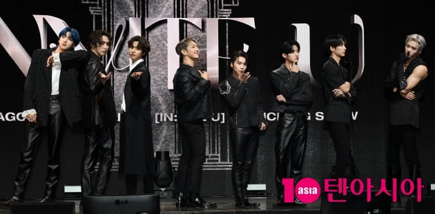 그룹 펜타곤(진호, 후이, 홍석, 신원, 여원, 옌안, 유토, 키노, 우석)이 24일 오후 서울 광진구 예스24 라이브홀에서 열린 미니 12집 '인바잇유(IN:VITE U)' 미디어 쇼케이스에 참석해 포즈를 취하고 있다.