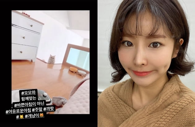 김은영은 12일 자신의 인스타그램 스토리에 "모모와 함께 맞는 바쁜 아침이 아닌 여유로운 아침. 주말. 꺄핫. 개냥이"라고 글을 올렸다. 함께 게시한 영상에서 김은영은 여유롭게 주말 아침을 맞고 있다. 장난감으로 침대와 소파에서 반려묘와 놀아주고 있다. 평온한 주말 일상이 보는 이들에게도 미소를 자아내게 한다.