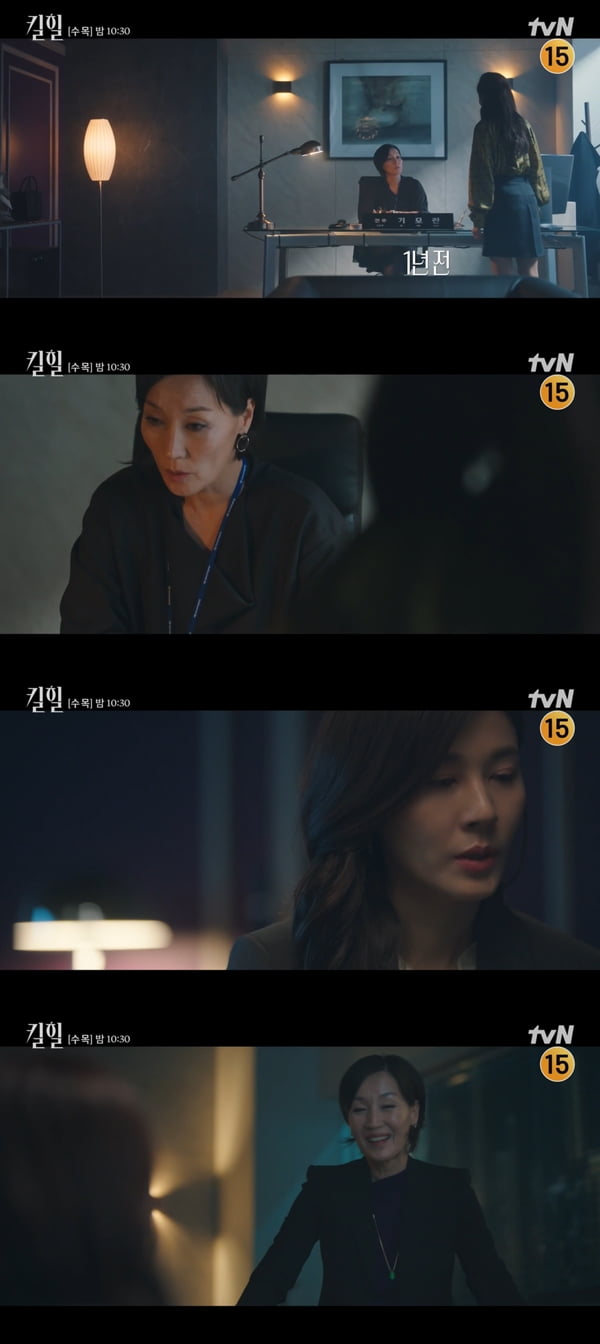 지난 10일 방송된 tvN 수목드라마 '킬힐'에서는 우현(김하늘 분)이 모란(이혜영 분)의 조작으로 추락하는 모습이 그려졌다.