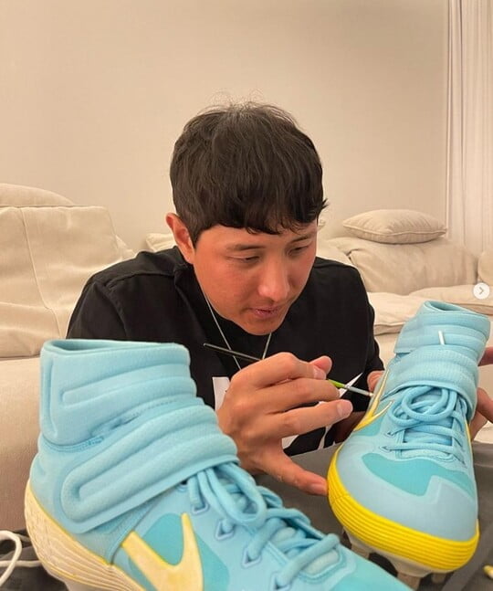 공개된 사진 속에는 황재균이 정성스럽게 운동화를 커스텀하고 있는 모습이 담겼다. 특히 섬세하게 운동화를 완성한 황재균의 반전 금손 실력이 놀랍다.