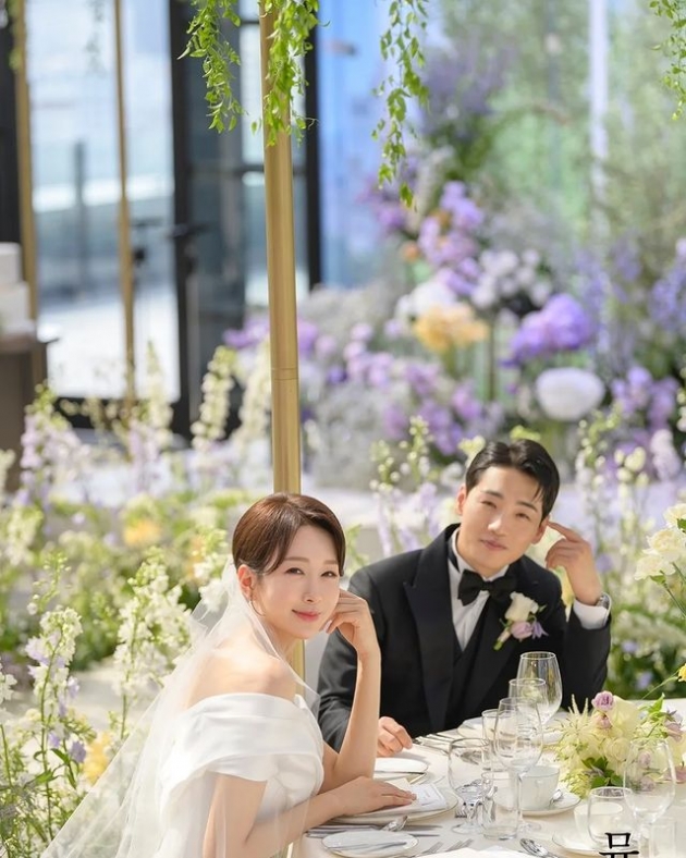 이어 두 사람은 꽃보다 아름다운 부부의 자태를 자랑해 시선을 끈다. 순백의 웨딩드레스와 블랙 턱시도를 착용한 두 사람의 모습은 흐뭇함을 자아낸다.