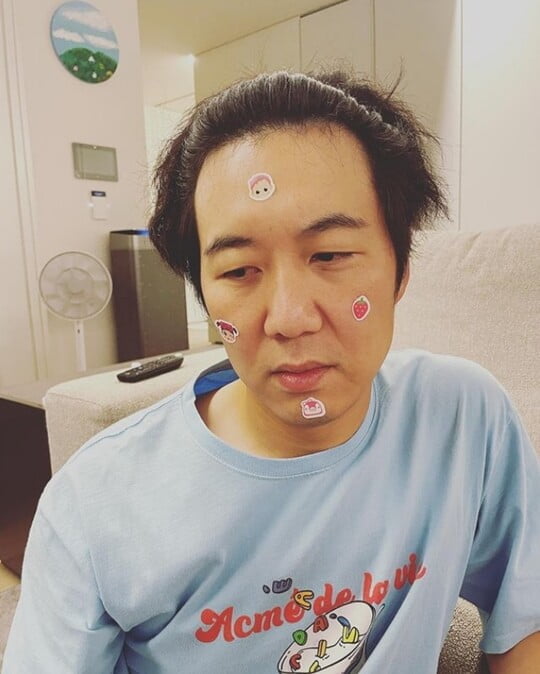공개된 사진 속에는 얼굴에 스티커를 붙인 도경완의 모습이 담겼다. 도경완은 "행복하다"라는 말과 달리 초점 잃은 눈동자로 어딘가를 응시하고 있어 웃음을 자아낸다.