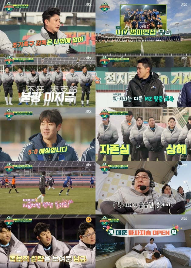 어제(5일) 방송된 JTBC ‘뭉쳐야 찬다 2’에서는 거제 동계 전지훈련 중인 ‘어쩌다벤져스’가 ‘인간 투석기’ 현영민 감독이 수장으로 있는 ‘울산 H고’와의 스페셜 매치에서 4 대 0으로 완패했다. ‘어쩌다벤져스’는 11명, ‘울산 H고’는 9명의 선수가 출전했지만 월등한 실력 차이를 극복할 수 없었다.