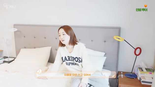 침실 역시 깔끔하게 정돈돼 있었다. 김소영은 "제가 우리집에서 제일 사랑하는 침대가 있다. 라지킹 사이즈가 처음에는 너무 크지 않을까 생각했는데 2021년에 제일 잘 산 아이템"이라며 만족스러워했다. 이어 "저희는 아주 오래 전부터 이불을 따로 쓰고 있다. 이불을 자꾸 상진 님이 뺏어간다"고 말했다. 오상진도 "더운 거와 추위에 대한 취향이 다르다"고 설명했다. 침대 옆 협탁에는 안대가 들어있었다. 김소영은 "좀 부끄럽다. 멋있지가 않아서"라며 안대를 꺼냈다. 김소영은 "저는 잘 때 안대를 무조건 쓴다"며 "안대가 제 인생에 정말 중요한 아이템이다. 안과에 가서 보니까 타고나게 눈이 벌어져 있어서 너무 밝으면 잠을 못 잔다"고 말했다. 이어 "안대가 비싼데 돈값을 한다"고 설명했다.