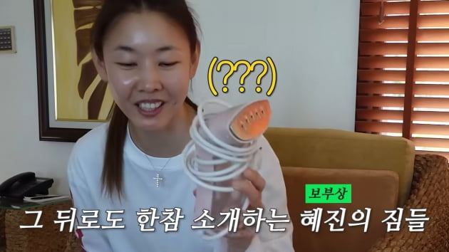 한혜진은 샴페인병을 들고 "안 깨지고 잘 왔다"며 웃었다. 비키니만해도 빨간 체크무늬, 초록색 비키니, 타월 재질의 하늘색 비키니, 오프숄더 비키니 등 4벌이나 있었다. 그는 한혜진은 오프숄더 비키니에 대해 "어깨끈 탄 자국 때문에 불편해서 이번에 따로 구입했다"고 설명했다.
