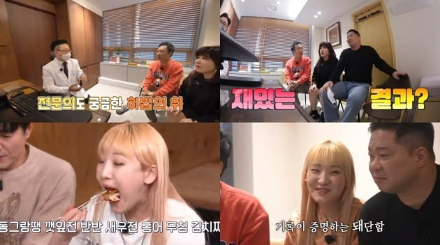 박명수는 본격적인 검사에 앞서 히밥이 검사 전 먹고 온 음식을 읊으며 걱정한다. 그는 의사에게 "히밥이 검사 직전 촬영에서 흑돼지 2.66kg, 된장 술밥 1개, 열무김치 말이 국수 1개, 순두부찌개 1개, 모둠 숙성사시미 1.5kg, 초밥 3개, 연두부 4개, 모둠전 68장을 이미 먹었다. 정말 괜찮은 것인지 궁금하다"라고 질문해 웃음을 자아낸다.