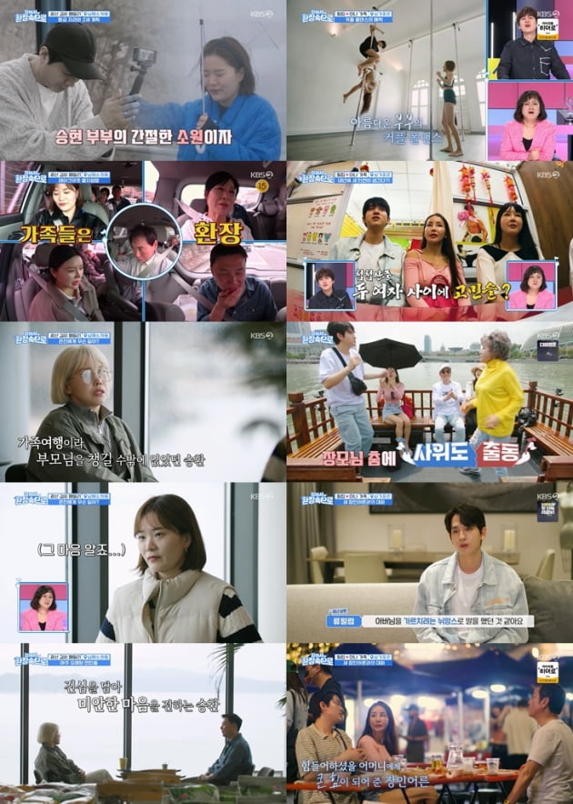 이에 김승현의 동생 김승환은 "내가 많이 부족하지만, 지금까지 만나줘서 고맙고, 사랑해"라는 영상 편지로 정은진의 마음을 풀어줬다. 이후 두 커플은 스카이 워크 체험에 나섰다. 아찔한 높이에 예민해진 첫째 며느리 장정윤이 "나 건드리지 마"라고 여러 번 말했지만, 김승현은 쉴 새 없이 장난을 쳤다. 결국 "집에 가서 편하고 싶으면 그만해"라며 어금니를 꽉 깨무는 장정윤의 모습에서 여행 둘째 날이 마무리됐다.