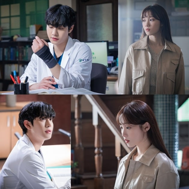 차은재는 그런 서우진을 걱정 어린 눈빛으로 바라보고 있다. 앞서 서우진의 사고 소식에 눈물을 글썽이는 차은재의 모습은 보는 이들까지 애가 타게 만든 바. 차은재는 서우진을 애틋한 눈빛으로 보다가, 무언가를 결심한 듯한 표정을 짓고 있다. 이어진 차은재의 돌발 행동에 서우진은 놀라면서도, 평소와 다른 차은재를 가만히 응시하고 있다. 두 사람의 심각해진 분위기가 과연 어떤 대화를 나눈 것인지 궁금증을 고조시킨다.