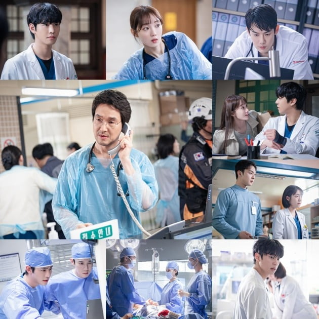 ‘직진 커플’ 박은탁(김민재 분)과 윤아름(소주연 분)의 브레이크 걸린 로맨스에도 궁금증이 쏠린다. 박은탁은 자신의 진심을 전하기 위해 꽃다발을 준비했지만 윤아름은 이별을 선언했고, 몰려드는 환자들을 돌보느라 박은탁은 끝내 그 마음을 전하지 못했다. 안타까움을 자아내는 이들의 로맨스 결말이 주목된다.
