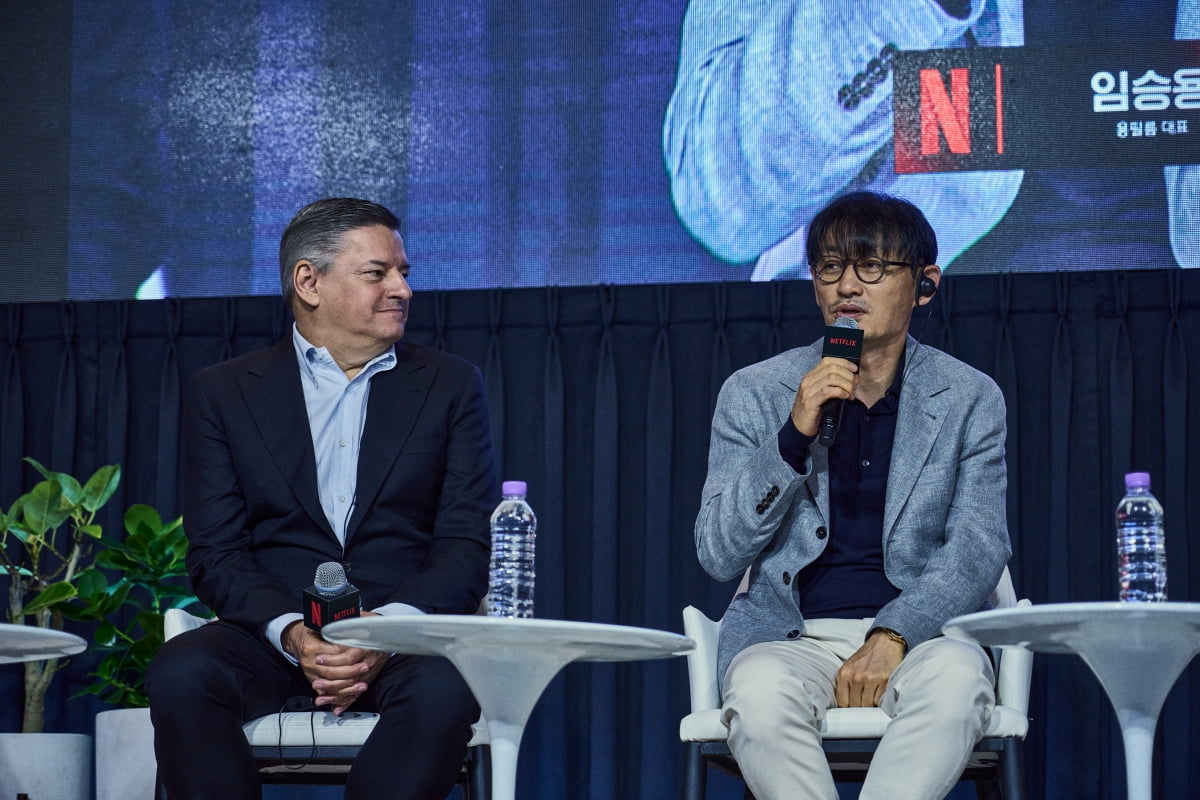 22일 오전 서울시 종로구 포시즌스호텔서울에서 넷플릭스와 한국 콘텐츠 이야기 간담회가 열렸다. 이 자리에는 넷플릭스 공동 CEO 테드 서랜도스를 비롯해 강동한 한국 콘텐츠 총괄, '더 콜' '20세기 소녀' 제작사 용필름 임승용 대표, '오징어게임' 제작사 퍼스트맨스튜디오 김지연 대표, '지옥' 'D.P.' 클라이맥스스튜디오 변승민 대표, '솔로지옥' 제작사 시작컴퍼니 김수아 대표가 참석했다.