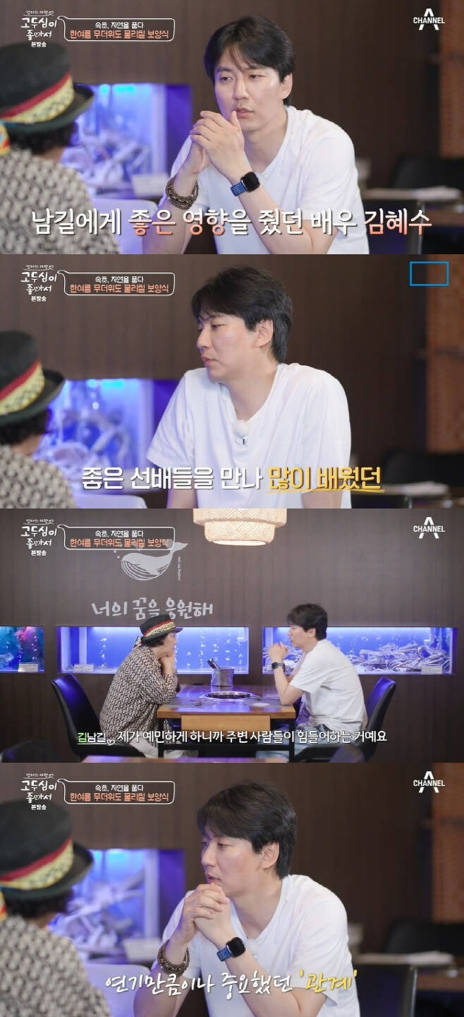 TVING '아일랜드'에서 연기 호흡을 맞췄던 고두심과 김남길은 1년 만의 재회에 반갑게 인사를 나눴다. 고두심은 당시 드라마 촬영 현장을 떠올리며 "네가 현장 분위기 메이커였다. 주인공 역할이면서 그렇게 분위기 잡는 게 쉽지 않다. 스태프들과의 교감도 너무 좋았다. 그래서 내가 '쟤 사나이네'라고 생각했다"고 말했다. 이에 김남길은 "내가 얘기하고 리드할 때 선생님이 옆에서 시키셨다"며 농담했다.