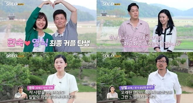 지난 5일 방송된 ENA, SBS Plus 예능 '나는 솔로'(나는 SOLO) 에서는 현숙(가명)과 영식(가명), 정숙(가명)과 영철(가명)이 최종 커플이 됐다. 상철(가명)은 영숙을 선택했지만, 영숙은 현실적인 문제들로 인해 선택을 포기했다.