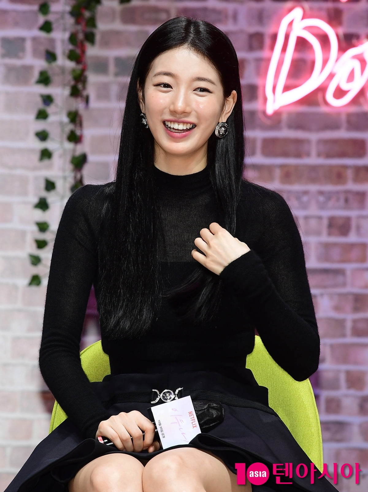 배우 수지가 18일 오전 서울 강남구 삼성동 coex 신한카드 artium에서 열린 넷플릭스 시리즈 '이두나!' 제작발표회에 참석하고 있다.