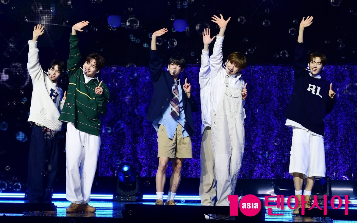 그룹 투어스(TWS/신유,도훈,영재,한진,지훈,경민)가 22일 오후 서울 용산구 블루스퀘어에서 열린 미니 1집 ‘스파클링 블루(Sparkling Blue)’ 데뷔 기념 쇼케이스에 참석해 멋진무대를 펼치고 있다.