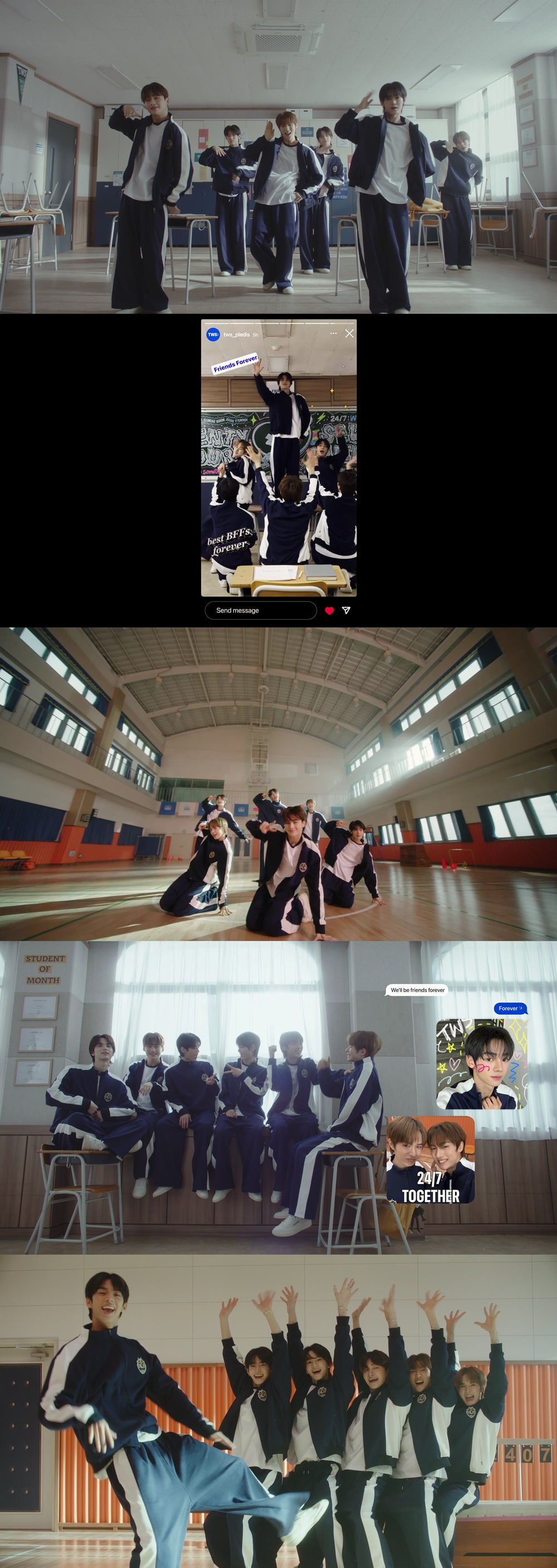 TWS(신유·도훈·영재·한진·지훈·경민)는 18일 0시 하이브 레이블즈 공식 유튜브 채널에 데뷔 앨범인 미니 1집 ‘Sparkling Blue’의 수록곡 ‘BFF’ 뮤직비디오를 깜짝 게재했다. 학교를 배경으로 촬영된 ‘BFF’ 뮤직비디오는 여섯 멤버의 싱그러운 케미스트리로 보는 내내 기분 좋은 감상을 안긴다.