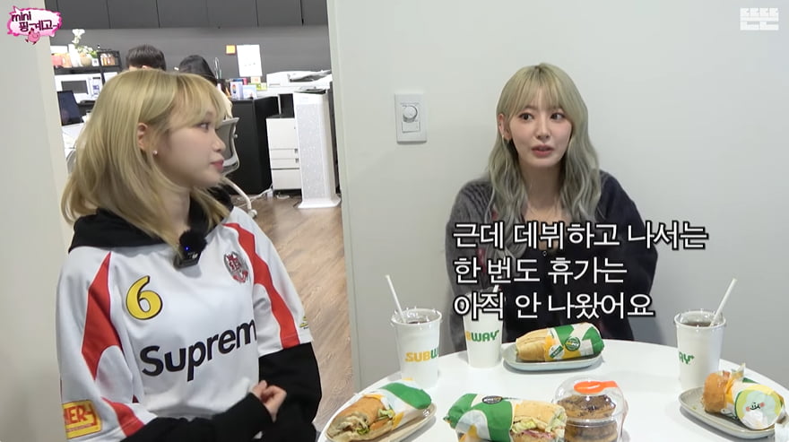 20일 유튜브채널 '뜬뜬'에는 르세라핌의 사쿠라와 김채원이 게스트로 출연했다. 공개된 'mini핑계고 : 유재석, 르세라핌(김채원, 사쿠라) @뜬뜬편집실 (OneCam)ㅣ EP.10'에서 김채원은 소속사 하이브의 구내식당에 대해 언급했다.