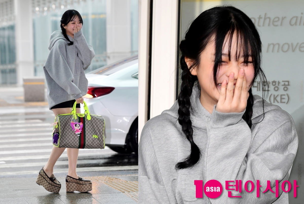 그룹 뉴진스 멤버 하니가 21일 패션소 참석차 인천국제공항을 통해 이탈리아로 출국하고 있다.